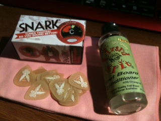 チューナー、フレットのコンディショナー、ピック、クロス